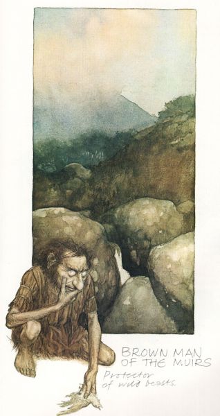 ชายสีน้ำตาลแห่งมิเอิส (Brown Man of the Muirs) ผู้พิทักษ์ทุ่งหญ้าและลำธารคอยเตือนให้เหล่านักล่าไม่ให้เข้ามาในเขตหวงห้าม แห่งประเทศสกอตแลนด์