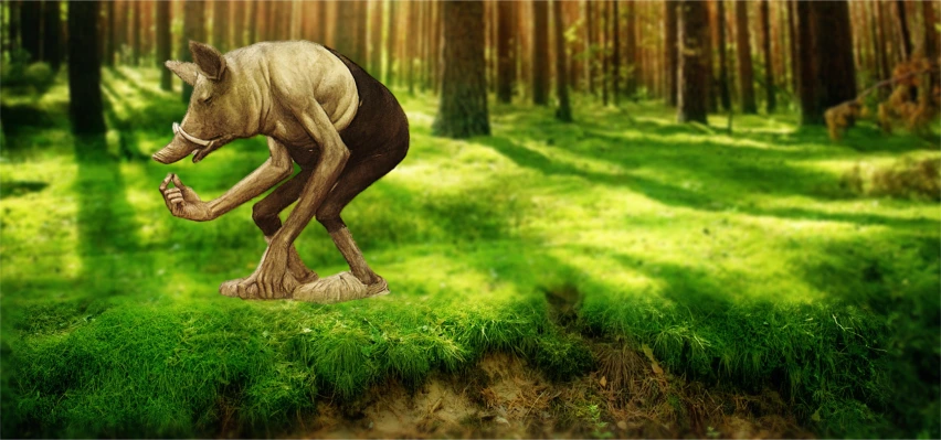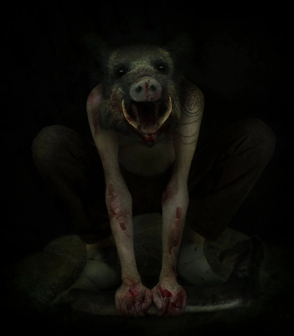 บางตำนานเล่าว่ามันเคยเป็นหมูยักษ์พาหนะของคู่รักยักษ์ แต่หลังจากที่ทั้งสองทะเลาะกันแล้วยักษ์ชายขว้างก้อนหินใส่ยักษ์ตัวเมียจากการทะเลาะวิวาท ทำให้ทั้งคู่หายตัวไปปล่อยมันทิ้งเอาไว้ หลังจากนั้นมันจึงกลายร่างมาเป็นมนุษย์หมูในเวลาต่อมา