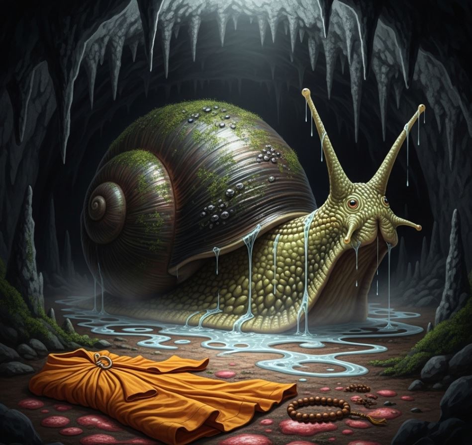 ในฤดูร้อนปี 1848 นักบวชเซนนามว่า “โซคัง” (Sōkan) กำลังฝึกตนอยู่ ณ เมืองโอจิ จังหวัดอิวามิ เขาได้พบกับถ้ำแห่งหนึ่งในหุบเขาที่ปกคลุมด้วยป่าไม้จึงได้ตัดสินใจเอยตัวลงและงีบหลับ ทันใดนั้นเอง เขารู้สึกว่าร่างกายของตัวเองหนักอึ้ง ร่างของเขาถูกพันด้วยเมือกเหนียว ๆ ของหอยทาก เขาดึงตัวเองออกจากหอยทากได้อย่างน่าอัศจรรย์ก่อนที่จะวิ่งลงไปที่แม่น้ำเพื่อล้างเมือกออก ถึงอย่างนั้น เขาก็ยังคงรู้สึกคันอยู่ 2-3 วัน แต่ก็ไม่ได้รับอันตรายใด ๆ