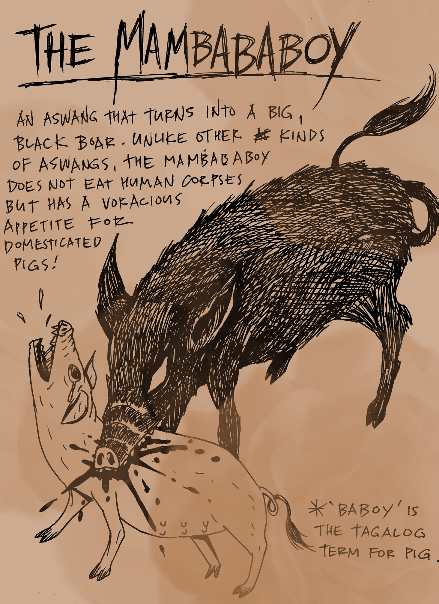 ชาวมารินบูเกะมีความเชื่อกันมาอย่างยาวนานว่าหากสุกรที่เลี้ยงเอาไว้เกิดการพากันล้มตายอย่างปริศนาเป็นฝีมือของสิ่งมีชีวิตแห่งความมืดที่เรียกกันว่า “มัมมาบาบอย” (Mambababoy) ที่ปรากฏตัวออกมาเป็นหมูดำขนาดใหญ่ พวกมันไม่ทำร้ายผู้คนแต่จะมุ่งเป้าหมายที่สุกรเลี้ยงแทน...