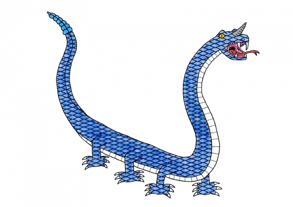 ทันใดนั้นเอง สิ่งมีชีวิตประหลาดที่มีรูปร่างคล้ายกับงูก็ได้กระโดดออกมาจากพงหญ้าและจู่โจมเขา มันมีหกขา ปลายเท้ามีหกนิ้ว ลำตัวยาวกว่า 10 เมตร มันเลื้อยที่คอและพยายามกัดหัวของเขา โชคดีของชายหนุ่มที่พกเคียวตัดหญ้ามาด้วย เขาเลยใช้มันตัดคอสิ่งมีชีวิตประหลาดจนรอดพ้นจากความตายมาได้สำเร็จ