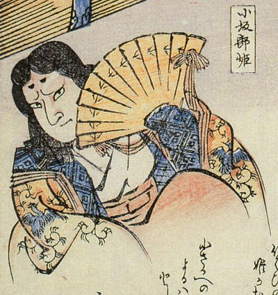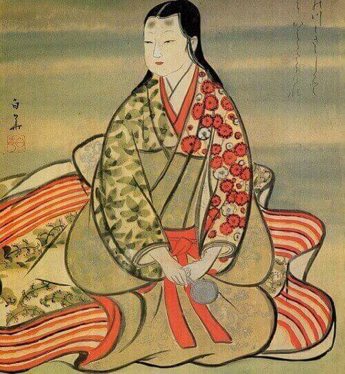 เขาเหมือนกับกลายเป็นอัมพาตจากความหวาดกลัว หลังจากนั้นประตูห้องก็เปิดออกพร้อมกับปรากฏให้เห็นหญิงสาวที่สวยงามและสง่างามอายุอยู่ช่วงวัย 30 ปี สวมชุดกิโมโนแบบ 12 ชั้น ที่สวยงาม เขาก็พลันกลับมาดีอีกครั้ง เขาเลยทำการแนะนำตัวเองอย่างสุภาพและอธิบายเหตุผลในการมาครั้งนี้
