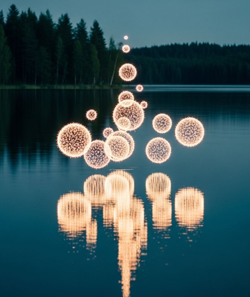 แสงของพวกมันมีความสว่างไสวในระดับที่แตกต่างกัน มีตั้งแต่แสงเทียนอ่อน ๆ ไปจนถึงระยิบระยับระดับดวงดาว พวกมันล่องลอยร่ายรำไปตามผิวน้ำของทะเลสาบอย่างสง่างามราวกับมีสติปัญญาและจุดหมาย