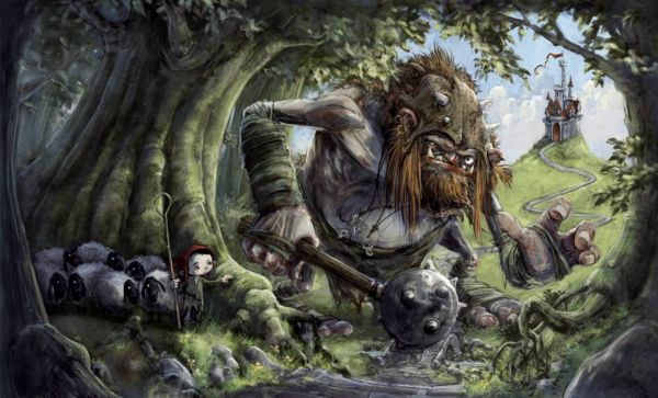 เมื่อเข้าไปในป่าเข้าพบกัยโทรลล์ตัวหนึ่งที่กำลังโกรธจัด เขาเลยหยิบชีสออกมาแล้วแสร้งทำเป็นว่ามันเป็นก้อนหินก่อนที่จะบีบมันจนกระทั่งแหลกเหลวจนชีสไหลออกมาจากมือ โทรลล์ที่โง่เขลาหลงเชื่อทันทีว่าเด็กชายแข็งแกร่งผิดมนุษย์ มันเลยเสนอตัวช่วยตัดไม้