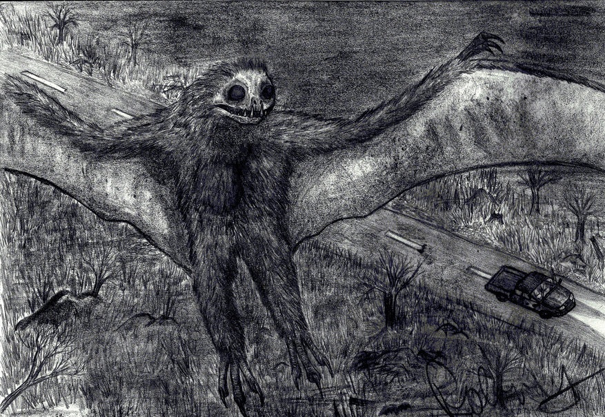 Steve และ Mary Mallette คู่รักทั้งสองกำลังขับรถอยู่ใกล้กับเขตรักษาพันธุ? สัตว์ป่า McClintie บนถนนหมายเลข 62 เส้นทางสู่เวสต์เวอร์จิเนียร์ ในขณะที่กำลังขับขึ้นเนินเขา พวกเขาอ้างว่าได้พบกับสิ่งมีชีวิตที่สูงกว่า 7 ฟุต มีดวงตาขนาดใหญ่สีแดง และปีกนกที่สยายกว้างออกได้กว่า 10 ฟุต พวกเขาพยายามหักเลี้ยวหลบเจ้าสิ่งมีชีวิตสุดประหลาดที่ไม่เคยเห็นมาก่อน แต่ในไม่กี่วินาทีต่อมา สิ่งมีชีวิตลึกลับตัวนั้น ได้มาปรากฏตัวอยู่ที่หน้ารถของพวกเขาอีกครั้ง
