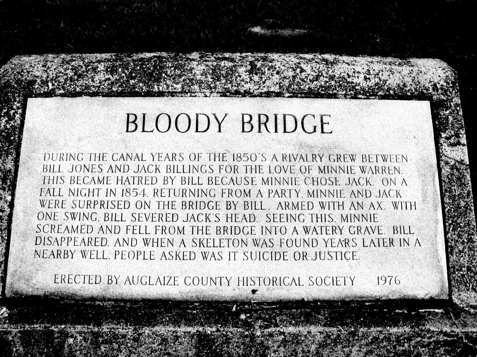 เรื่องราวสยองขวัญของสะพานเลือด ได้รับการบันทึกเอาไว้บนป้ายศิลาบริเวณสะพาน ดังต่อไปนี้