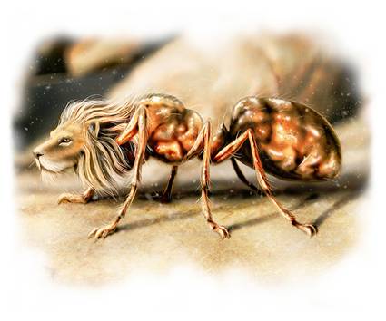 มันเป็นสัตว์ประหลาดที่มีความขัดแย้งทางร่างกายสูงมาก กล่าวคือส่วนหัวที่เป็นสิงโตต้องการเนื้อ ส่วนร่างกายมดต้องการอาหารประเภทพืช ทำให้พวกมันมักหิวโหยอยู่ตลอดเวลาและท้ายที่สุดมักจะอดตายไปในที่สุด